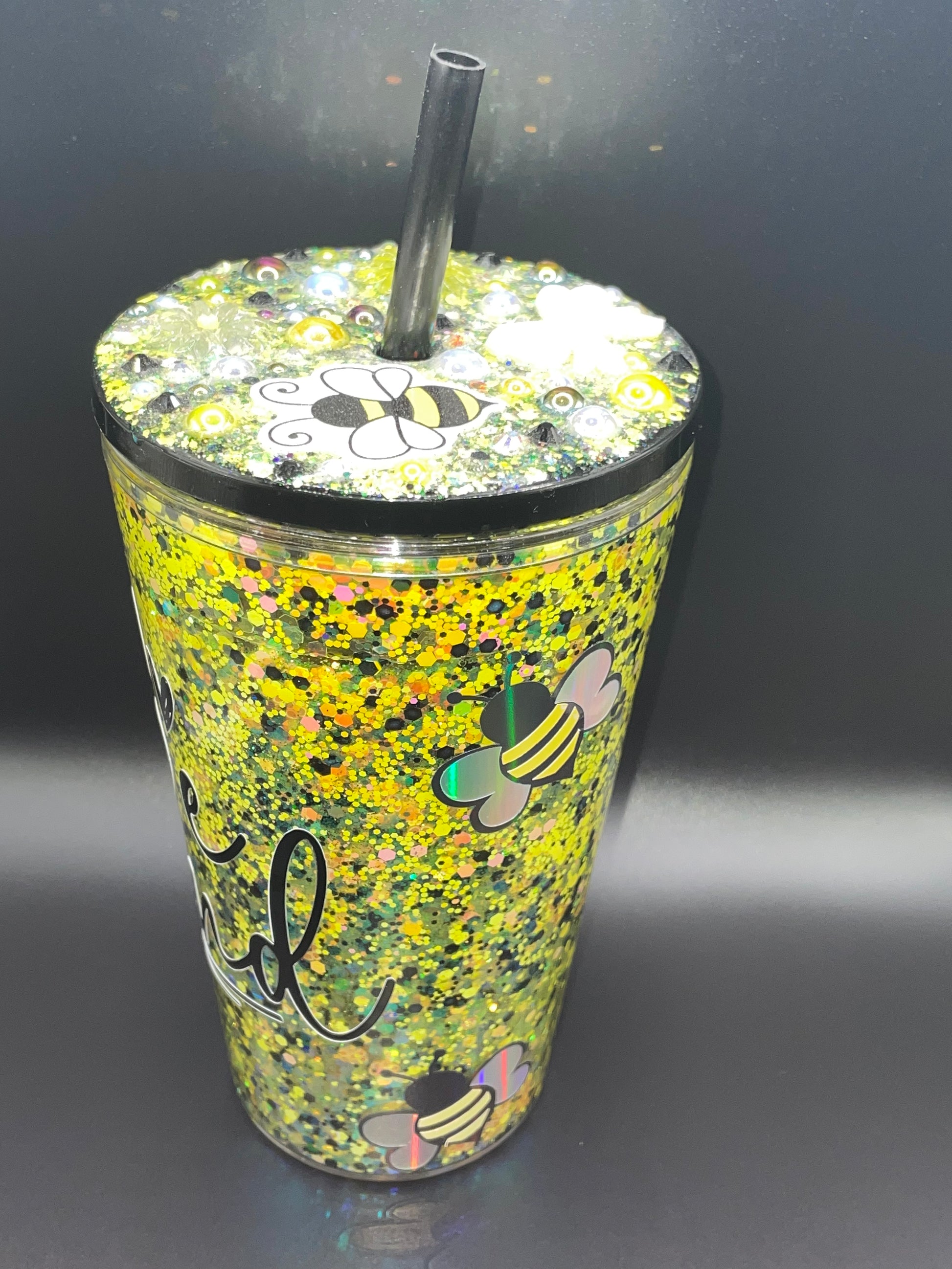 Be Kind with Bees vinyl. Suspended flow. Blinged lid.
