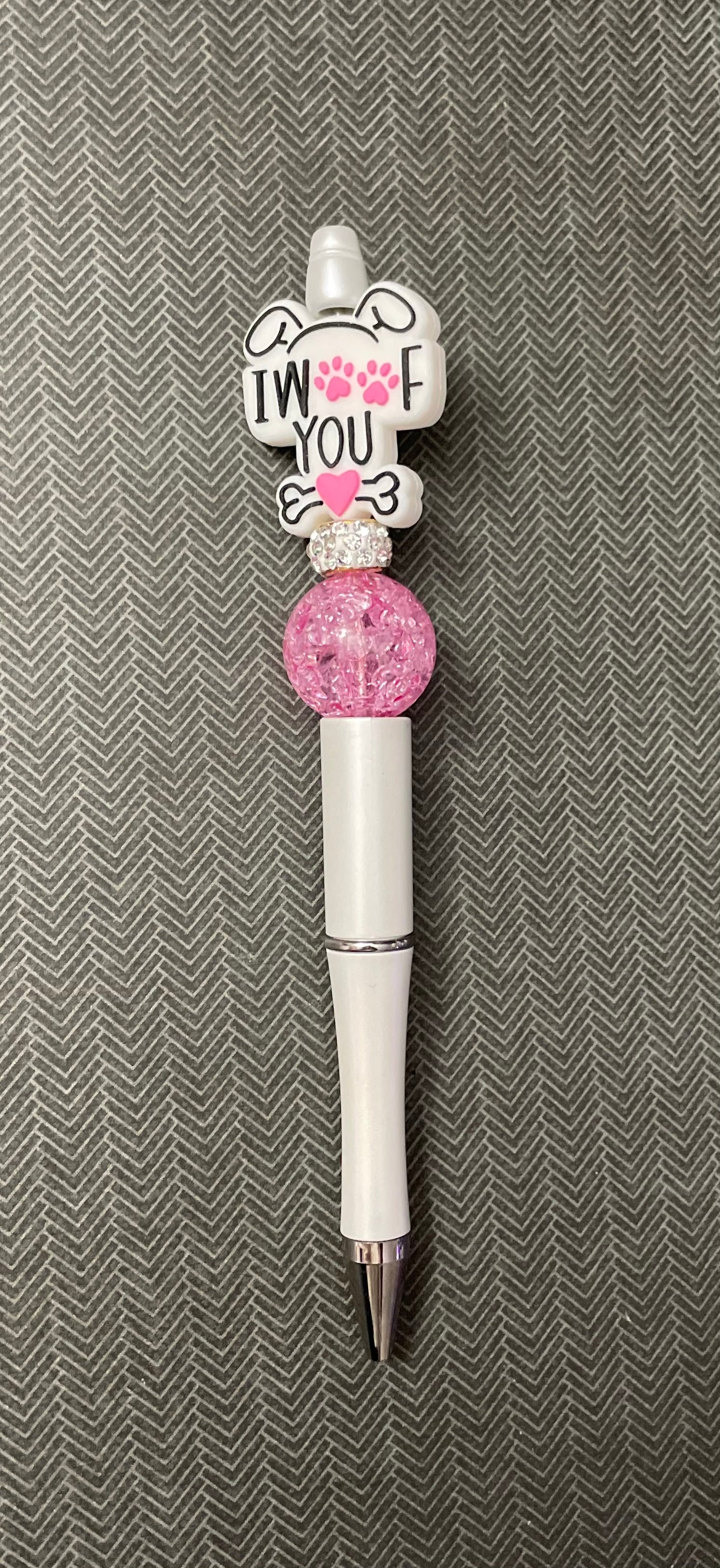 Custom beaded pen with black ink. Refills available.